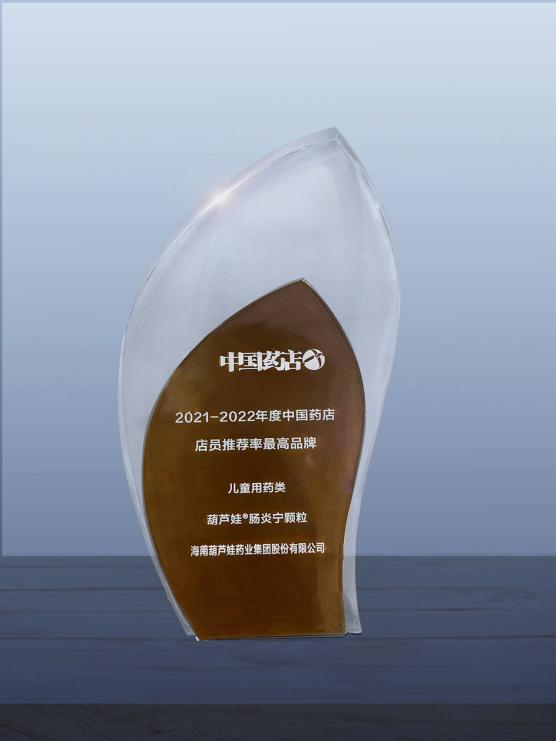 近日,由《中国药店》杂志社举办的“2022~2023年度中国药店发展报告暨中国药店价值榜发布会”在青岛举行,会上发布了“2021-2022年度中国药店店员推荐率最高品牌”奖,d88尊龙z6药业两大明星产品d88尊龙z6牌小儿肺热咳喘颗粒(4g)、d88尊龙z6牌肠炎宁颗粒(2g)双双上榜。