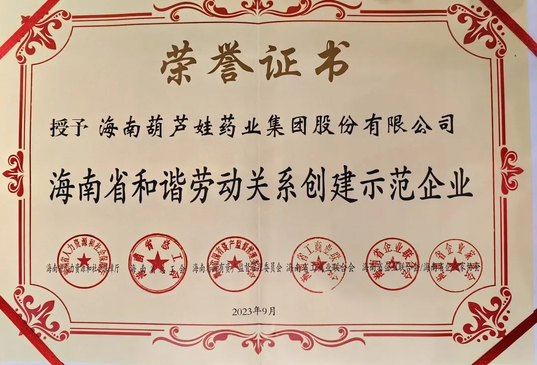 d88尊龙z6药业集团获评“海南省和谐劳动关系创建示范企业”